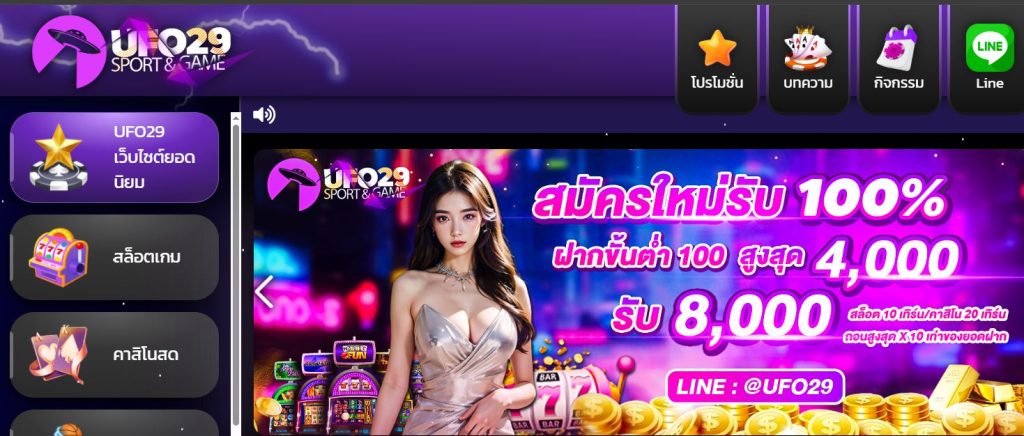 ทางเข้าเล่น ในมือถือ UFO29 เป็นแพลตฟอร์มเกมและการพนันออนไลน์ที่ได้รับความนิยมสูงสุดในปัจจุบัน คุณสามารถเข้าสู่ระบบเล่นสล็อตและการพนันออนไลน์ได้ทันทีผ่านเว็บหรือมือถือ โดยไม่ต้องดาวน์โหลด เพลิดเพลินกับประสบการณ์การเล่นเกมออนไลน์ที่สนุกสนานและท้าทายผ่านกราฟิก 3 มิติที่สวยงาม ที่จะทำให้คุณหลงใหลและไม่อยากหยุดเล่น เชิญชวนคุณทุกท่านที่กล้าท้าทายมาเล่นออนไลน์ในวันนี้ ทางเข้า UFO29 เปิดรับการเล่นเกมทุกรูปแบบทุกค่ายเพียง 1 บาทเท่านั้นที่เว็บตรงไม่ผ่านเอเย่นต์ล่าสุดที่มอบประสบการณ์การเล่นของผู้เล่น